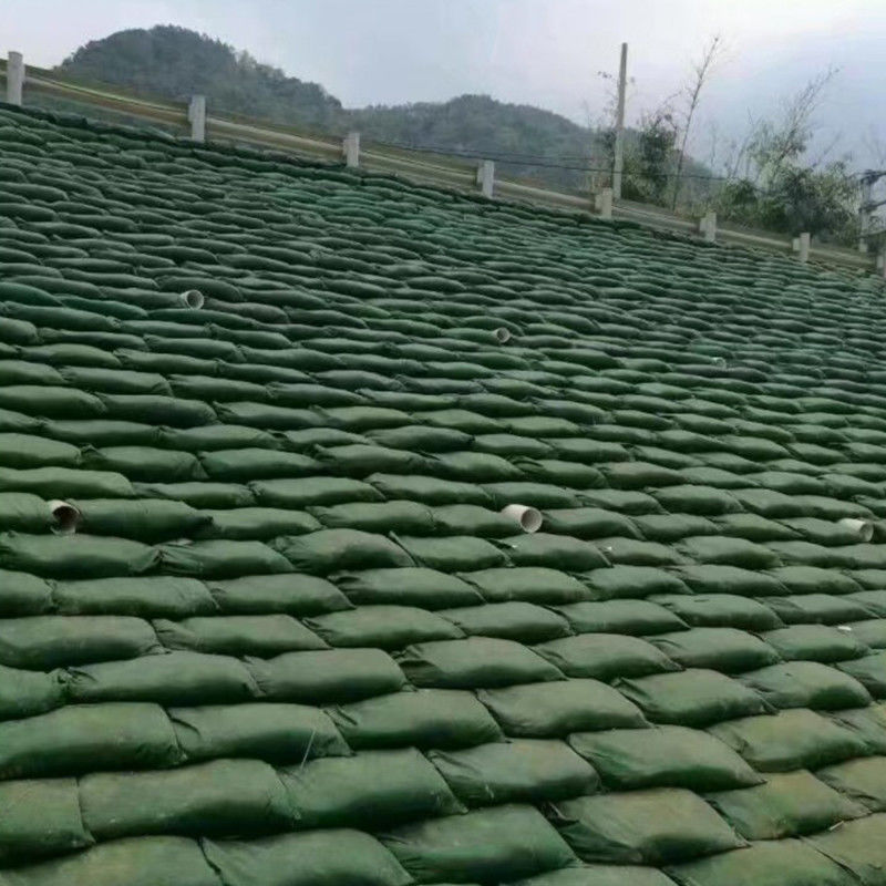 토목섬유 가방은 원료로서 PET 또는 피피로 만들어집니다. 그들은 스펀본드 방식에 의해 만들어지고 그리고 나서 특정 크기의 가방으로 처리된 이중의 측면을 가진 다름질되고 모양이 형성된 부직포입니다. 자루형 동체는 과학적 비율에서 국부 토양 상태에 따라 토양, 모래, 비료, 기타 등등으로 충전됩니다. 그리고 나서, 국지 기후의 성장에 적합한 잔디 이식 덮개는 새로운 생태계를 복구하거나 만들 수 있는 제품을 형성하기 위해 분사됩니다.